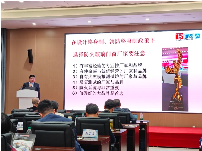 恒保董事長陳沃林先生在論壇上分享報告《高品質(zhì)防火玻璃及其在超高層建筑核心筒中的應(yīng)用》,從正確認識防火玻璃、什么是高品質(zhì)防火玻璃、高層建筑消防當前趨勢以及高品質(zhì)防火玻璃系統(tǒng)在高層建筑中的應(yīng)用四個方面介紹防火玻璃系統(tǒng)產(chǎn)品在高層建筑消防的作用,并分享如何正確選擇防火玻璃系統(tǒng)產(chǎn)品的經(jīng)驗,讓高層建筑更加美觀實用的同時,避免出現(xiàn)火災(zāi)時“防火玻璃”不防火的現(xiàn)象。陳沃林先生呼吁大家共同抵制假冒偽劣防火玻璃產(chǎn)品,對建筑消防安全負責、對生命安全負責。